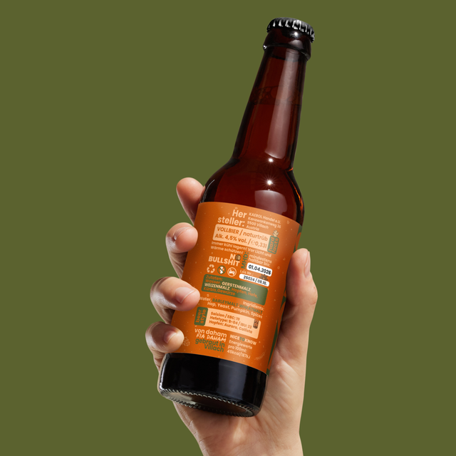 „Unser Pumpkin Ale enthält glutenhaltiges Getreide – nämlich Gerste und Weizen. Zusätzlich werden Kürbis und verschiedene Gewürze (darunter Zimt, Anis, Sternanis, Muskatnuss, Koriander, Nelken, Pfeffer, Kardamomsaat, Ingwer und Piment) verwendet. Diese Allergene sind auf dem Etikett in der Zutatenliste fettgedruckt hervorgehoben.