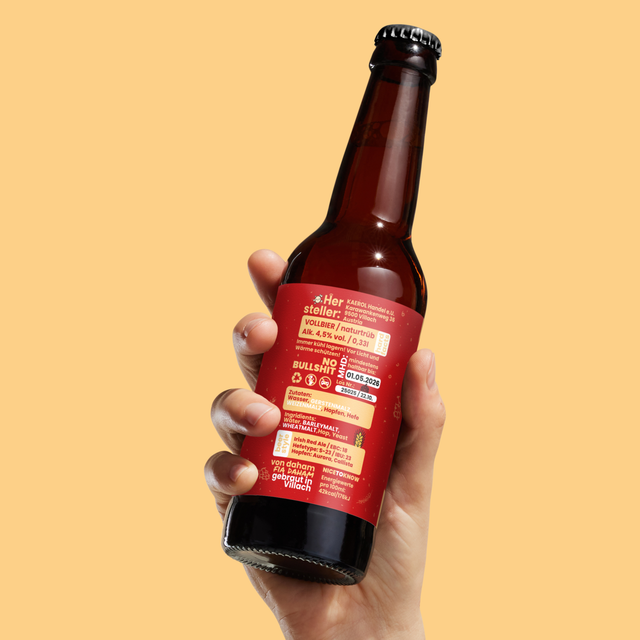 „Unser Red Ale enthält glutenhaltiges Getreide – nämlich Gerste und Weizen. Diese Allergene sind auf dem Etikett in der Zutatenliste fettgedruckt hervorgehoben.